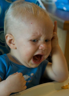 Poor little guy. At least I only had to do something like FIFTEEN rounds! Now come on, he didn't scream the entire time...only while we shredded...he happily munched on his crackers while we measured, scooped, and sealed.